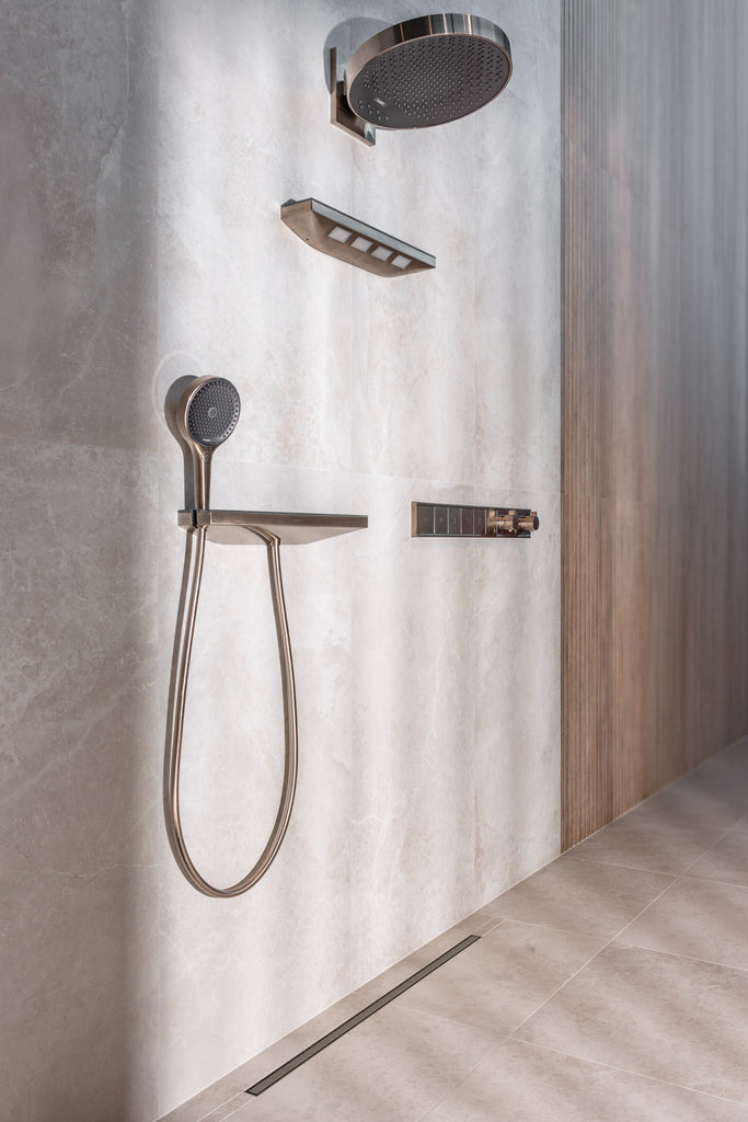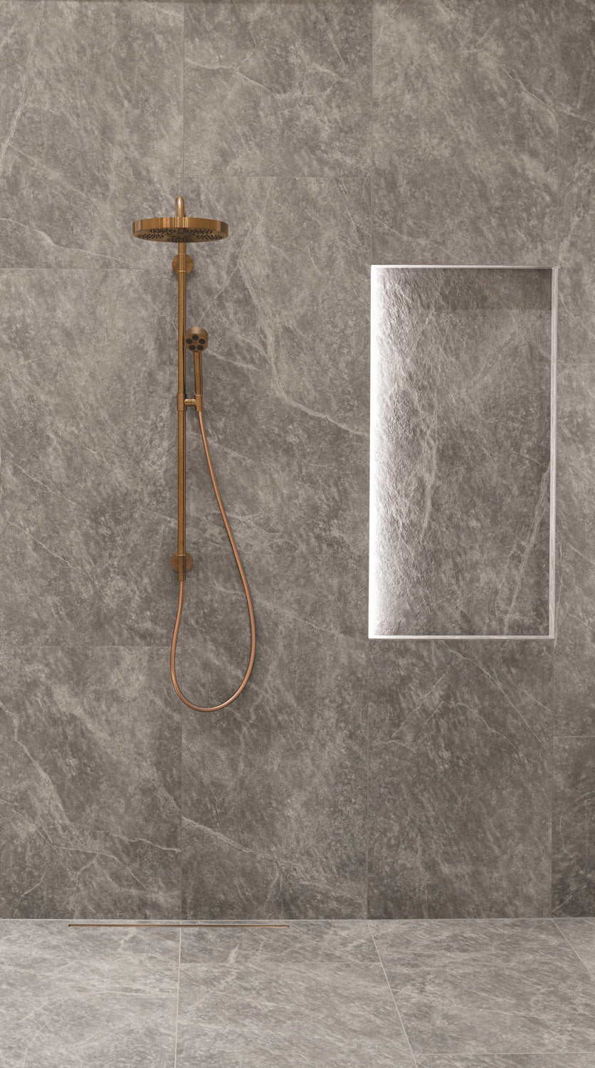 In de basis is iedere Carrodrain douchegoot van gelijke kwaliteit; een krachtpatser die 31 liter water per minuut afvoert. Maar bovengronds heb je een waaier aan designkeuzes. De vorm kies je functioneel op basis van je vloertype en de dikte, en aan de hand van je persoonlijke smaak. Leg je een vloer in microcement, epoxy of een PU-gietvloer? Dan is de Carrodrain Liquid de beste keuze voor jouw project. Indien je dat wenst, kun je het rooster van de Carrodrain Liquid zelfs meekleuren met je vloerafwerking. Zo krijgt jouw douchevloer een erg strakke look. Bij keramische tegelvloeren kom je uit bij onze Carrodrain Invisible of Twiggi. We bieden al onze drainroosters in 9 verschillende kleuren aan. Kies je voor harmonie met je douchekranen? Kijk dan of jouw kraan een perfecte match heeft met de Carrodrain kleuren! Maar je kunt ook kiezen voor een contrast met je vloer, zwart op wit werkt altijd! Of kies je liever voor toon op toon, zodat de douchegoot opgaat in de tint van je vloer? De keuze is aan jou! Met onze 3D-simulator kun je makkelijk het effect van jouw kleurencombinatie inschatten.