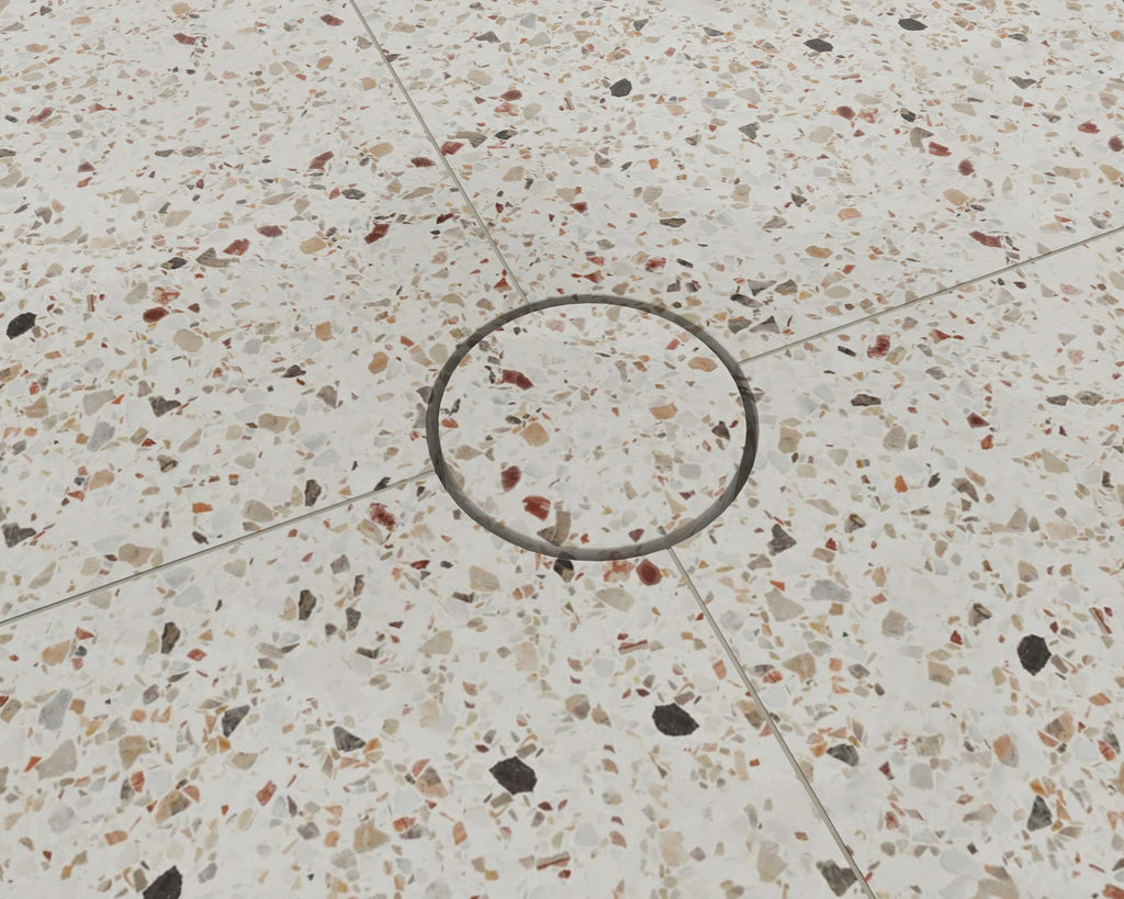 Werkt u met een vloerafwerking in marmer, tegels of mortex? Dan is Invisible Disco doucheput de perfecte oplossing voor uw inloopdouche met centrale afvoer.